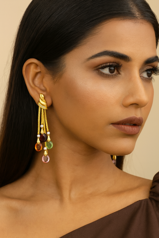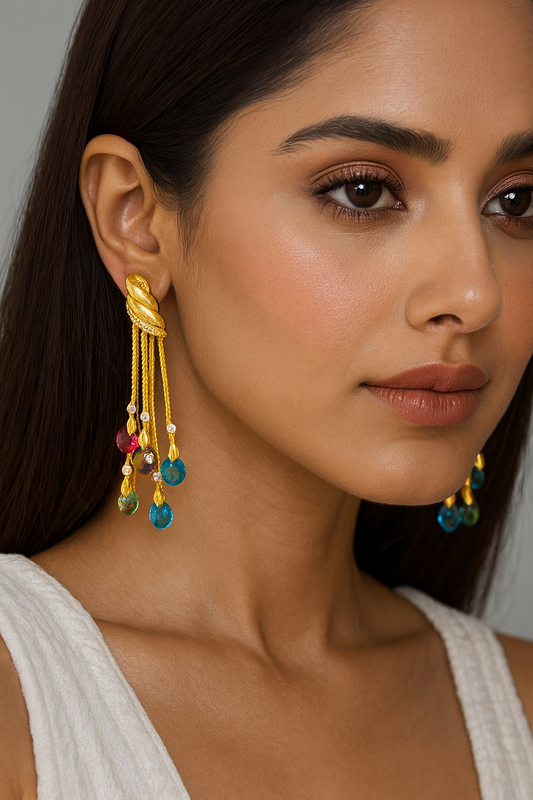 Designer Gold Finish Earrings with Multicolor CZ Stone Drops