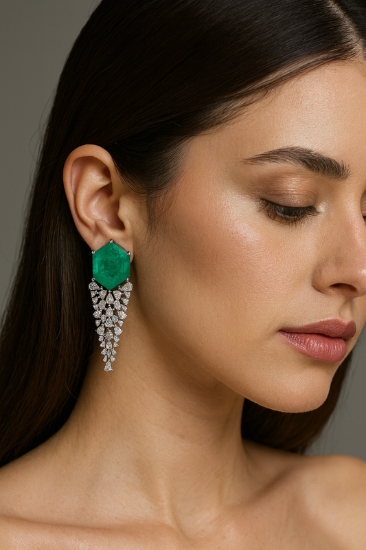 Designer Statement Earrings with Emerald Green and Cubic Zirconia