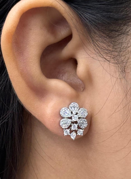 Glamorous Silver Plated Zircon Chandelier Earrings