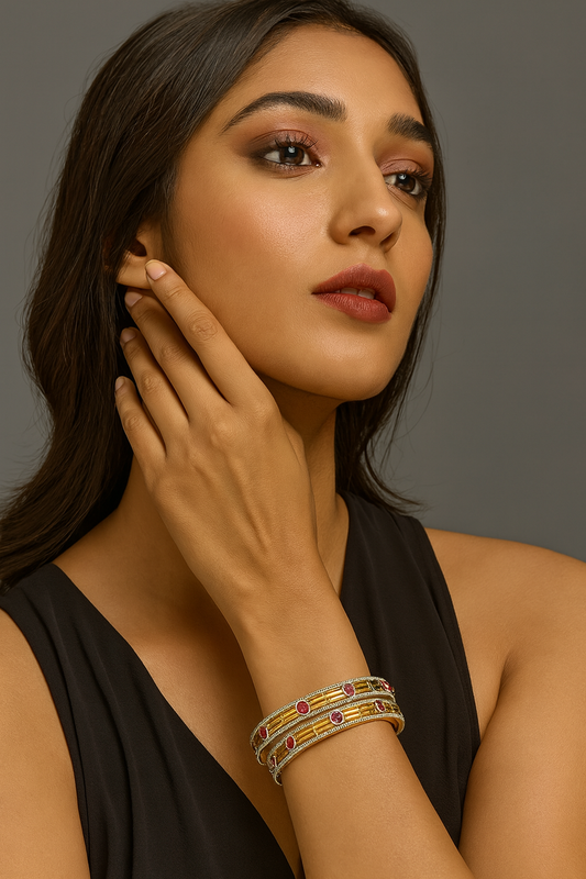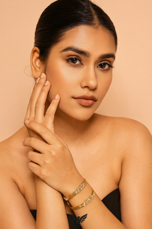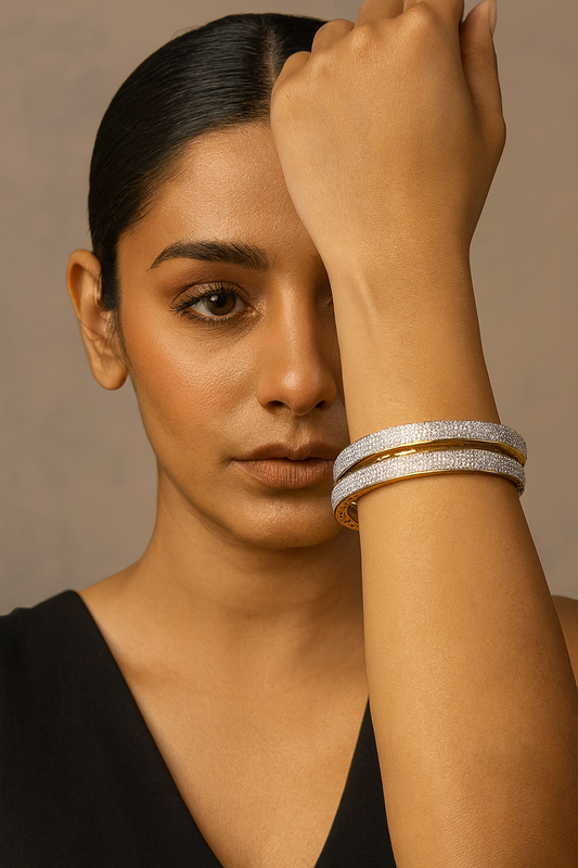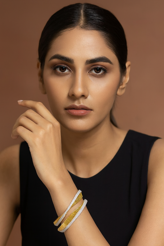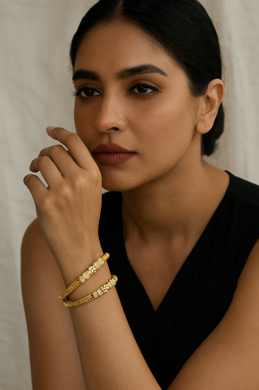 UNIQUE BANGLES GOLD POLISH WITH SILVER CZ STONE