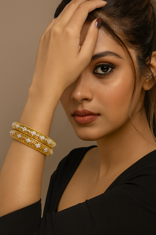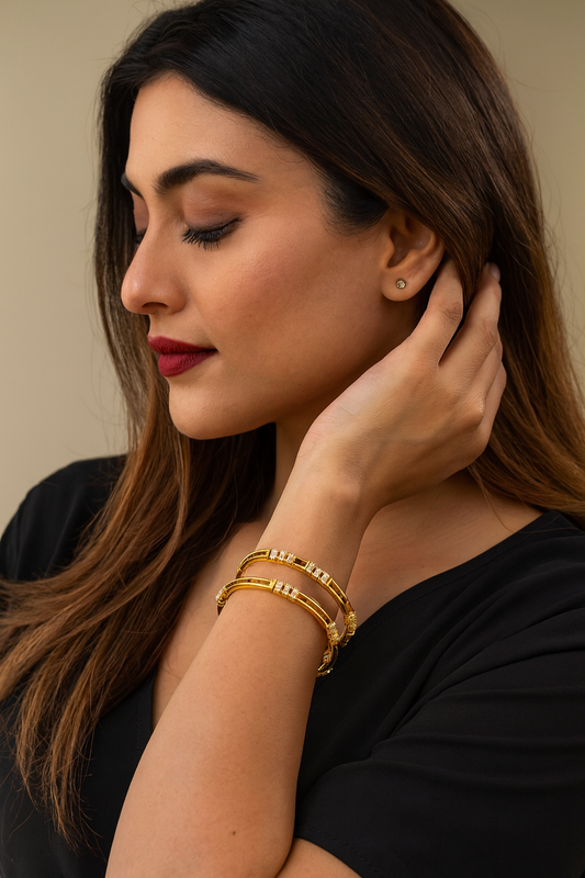 GOLD POLISH BANGLES FOR WOMEN WITH CZ STONE