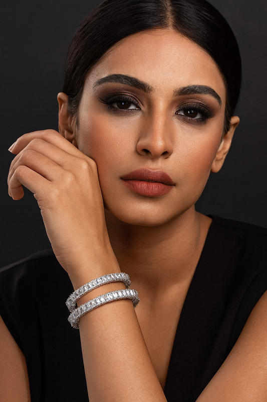 SILVER POLISH WITH AD STONE BANGLES FOR WOMEN