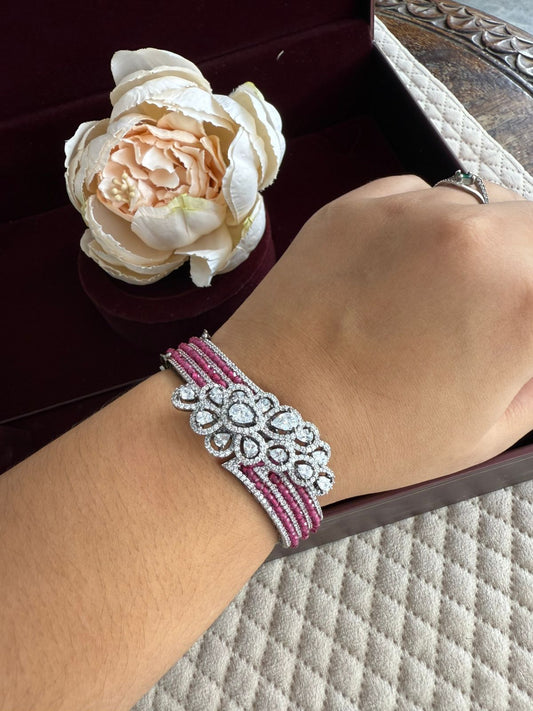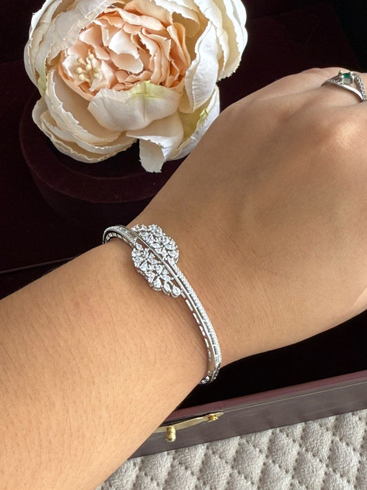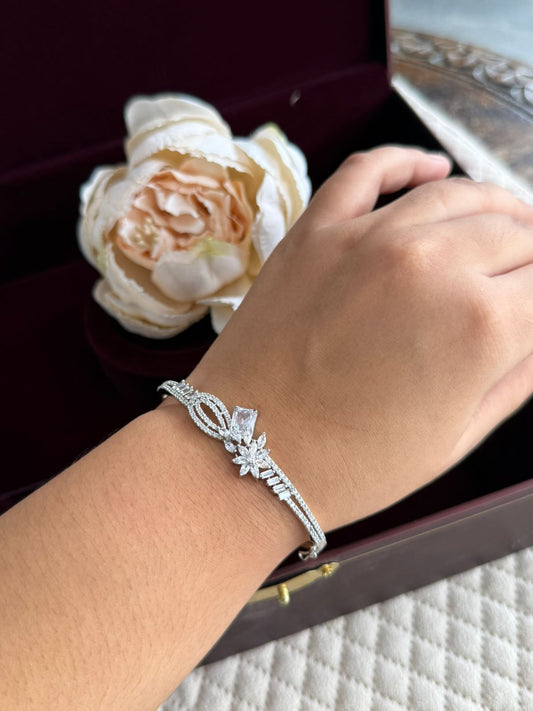 UNIQUE SILVER POLISH WITH CZ STONE BRACELET