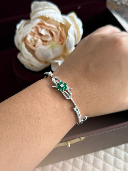 GREEN FLOWER WITH SILVER POLISH BRACELET