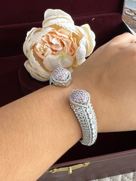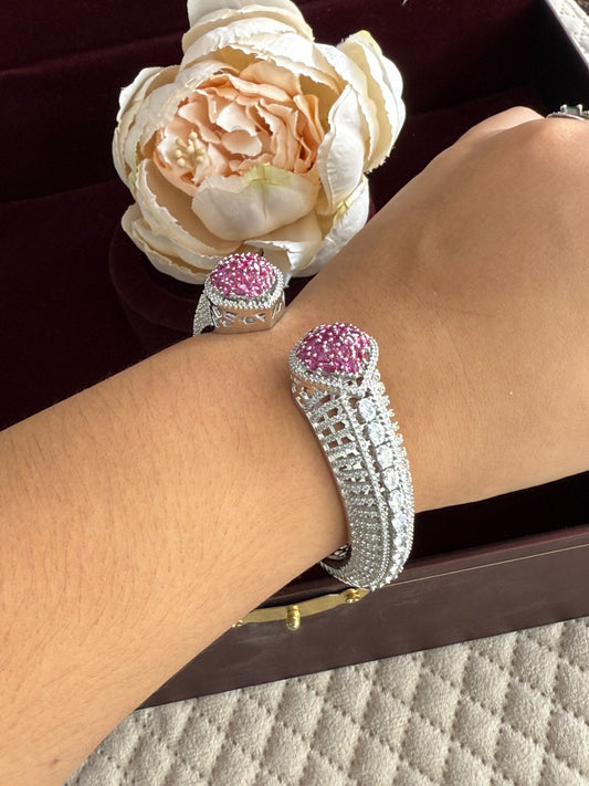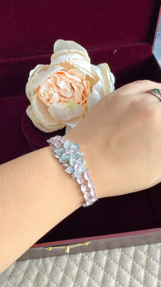 PINK AD DIAMOND WITH SILVER PLATE BRACELET FOR WOMEN