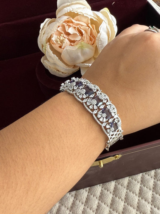PURPLE AD DIAMOND WITH SILVER PLATE BRACELET FOR WOMEN