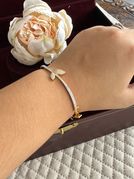 CLASSIC GOLDEN POLISH WITH CZ STONE BRACELET FOR WOMEN