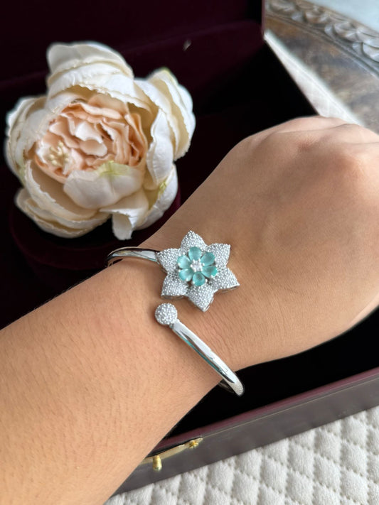 MINT AND SILVER CZ STONE FLOWER SHAPE BRACELET
