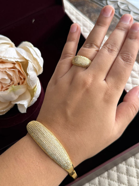 GOLDEN POLISH BRACELET AND RING COMBO FOR WOMEN