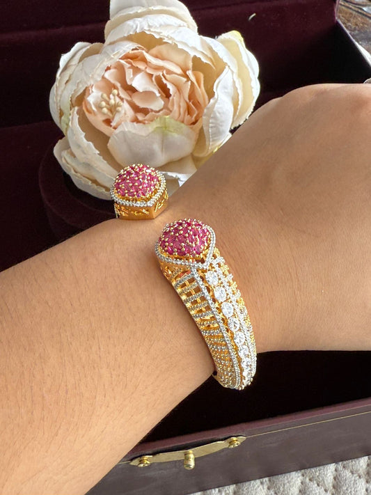 RED CZ STONE WITH GOLDEN POLISH BRACELET FOR WOMEN