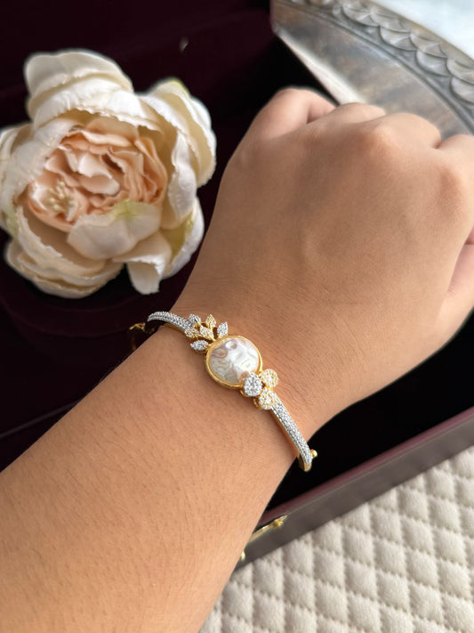 PEARL GOLDEN POLISH WITH CZ STONE BRACELET FOR WOMEN