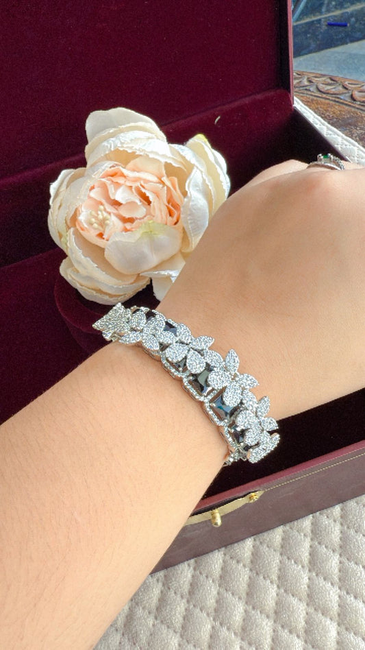 FLORAL CZ STONE WITH SILVER POLISH BRACELET FOR WOMEN
