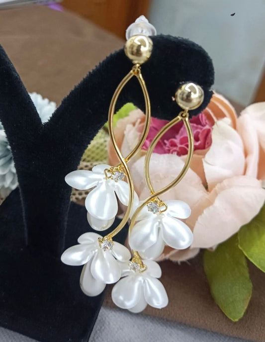 Statement Drop Flower Earring in white for woman