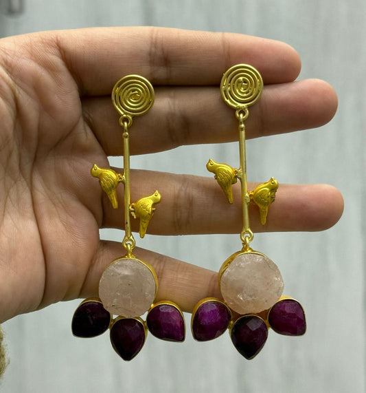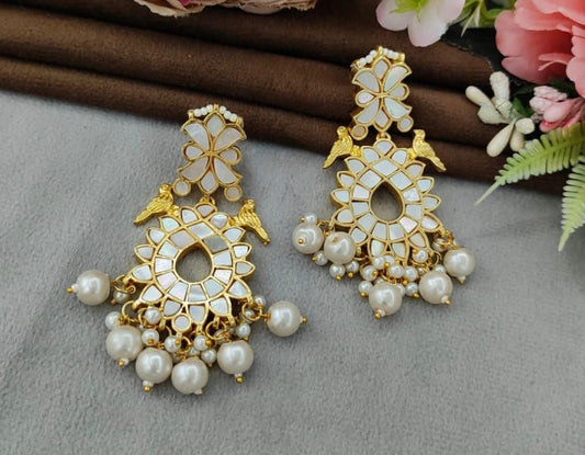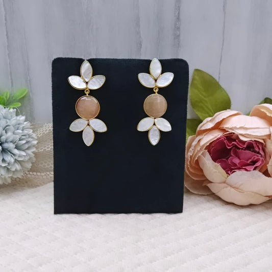 delicate shell pearl and mop stone gold plated handmade earing for woman