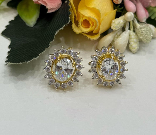 Oval Solitaire Channel Settting Studs In cz with screw For Women
