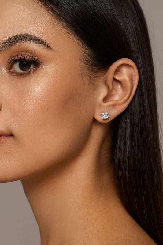 Square Solitaire Channel Settting Studs In cz with screw For Women