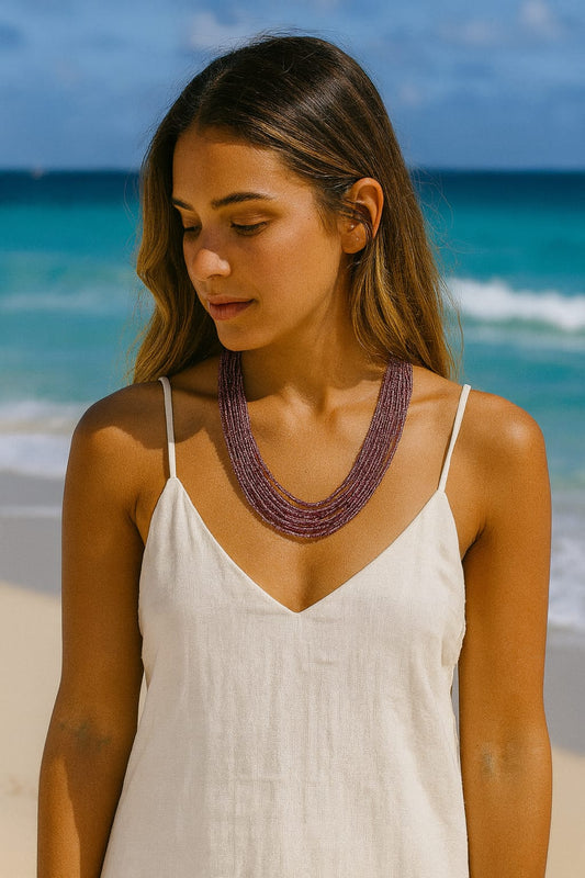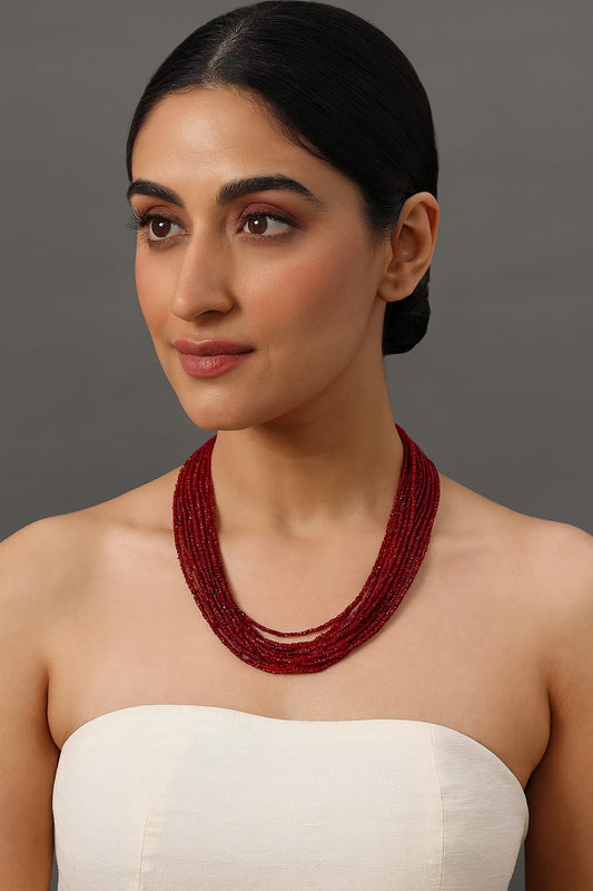 Elegant Handmade Multi-Strand Maroon Hydro Beads mala for women