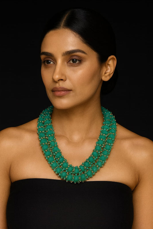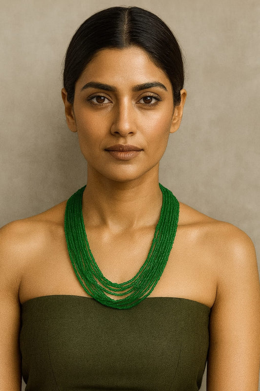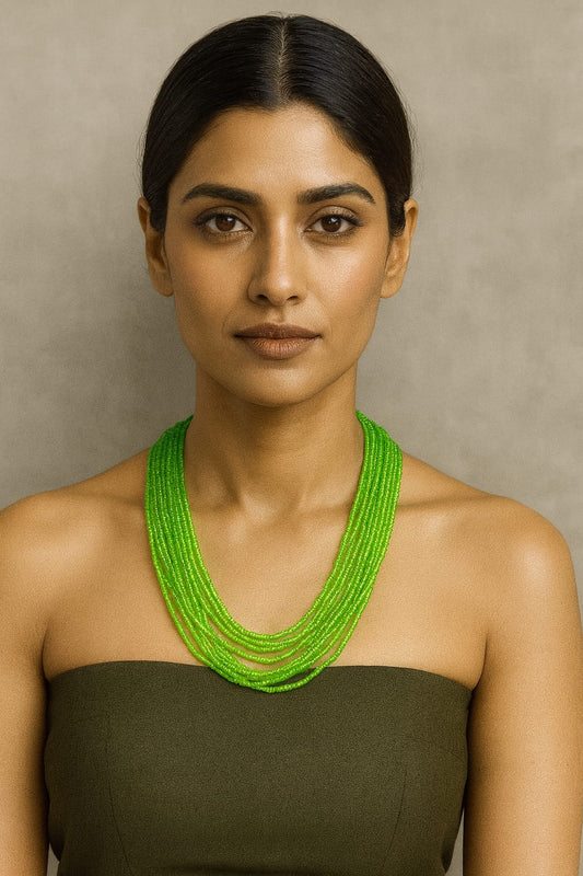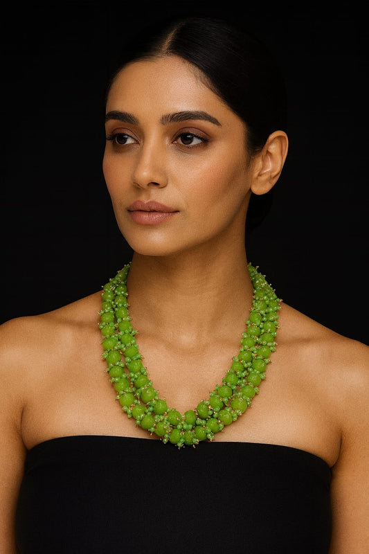 Elegant Handmade Multi-Strand Green Hydro Beads mala for women