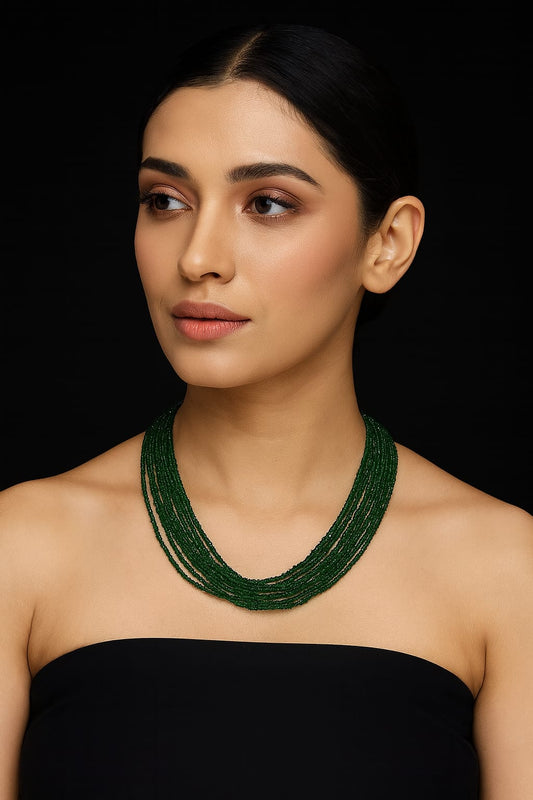 Elegant Handmade Multi-Strand Dark Green Hydro Beads mala for women