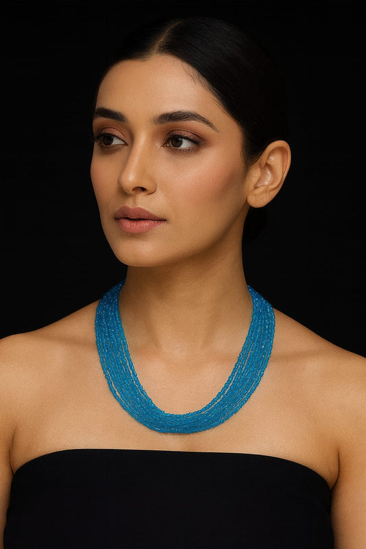 Elegant Handmade Multi-Strand Aqua Blue Hydro Beads mala for women