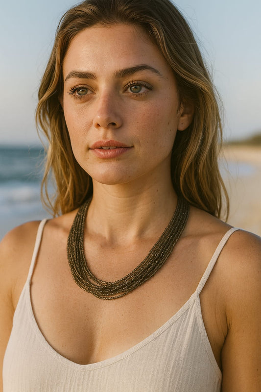 Elegant Handmade Multi-Strand Brown Hydro Beads mala for women