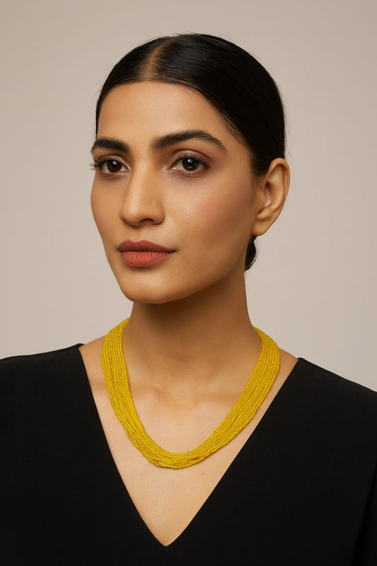 Elegant Handmade Multi-Strand Yellow Hydro Beads mala for women
