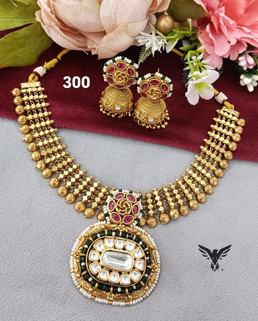 Devisha Rajwadi traditional style kundan necklace with matar in green for womens