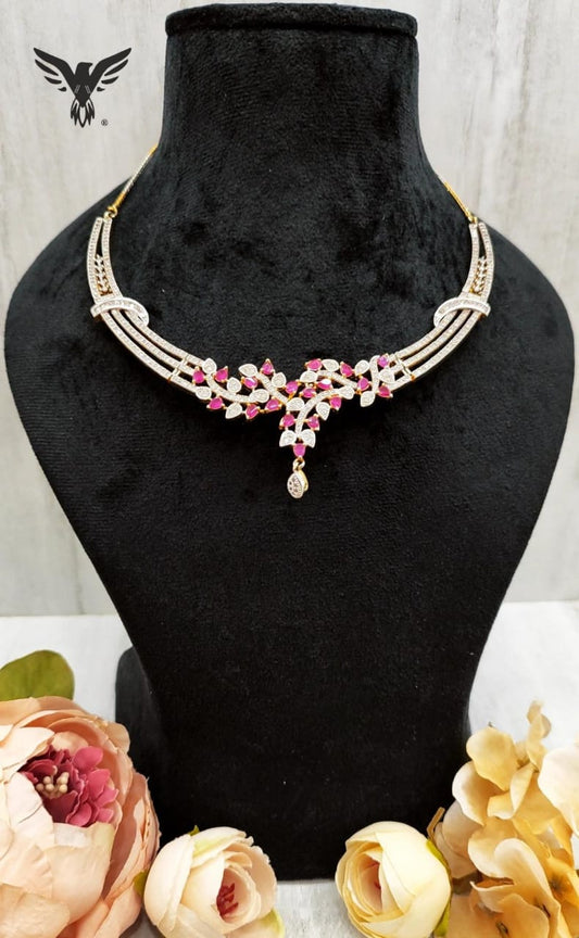 Nishtha American Diamond Necklace Set In Pink Drop For Women