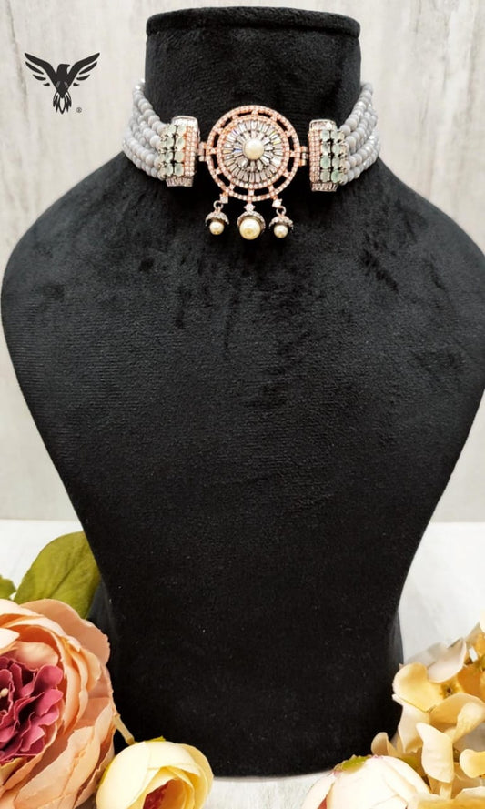 Niva Multi Layered Mala With Diamond Broach Choker Set For Women