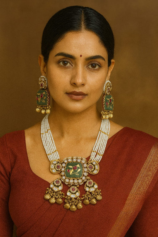 Amaira Rajwadi traditional style kundan Broad necklace beading in green for womens