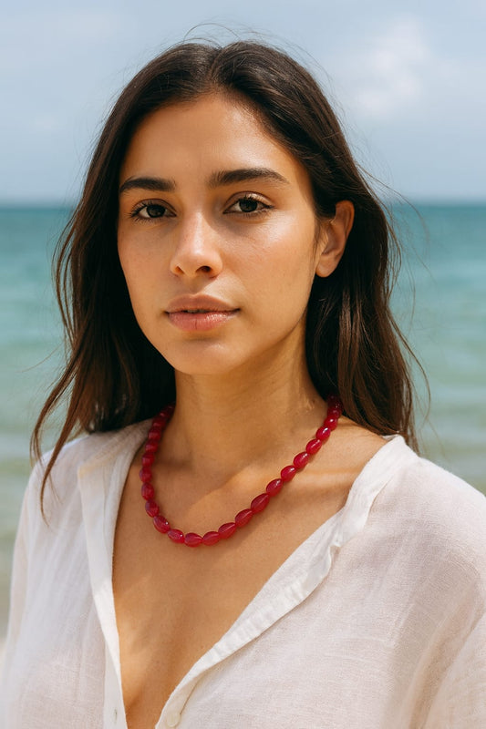 RED ONYX PEARLS MALA FOR WOMEN 2-3mm SIZE
