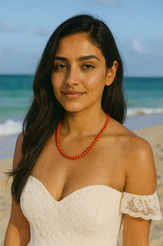 ORANGE CORALS SINGLE LAYER MALA FOR WOMEN 2-3mm SIZE