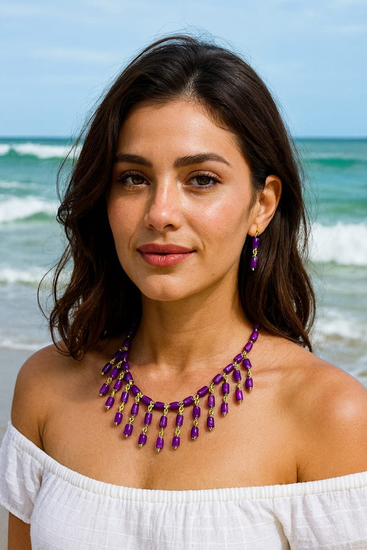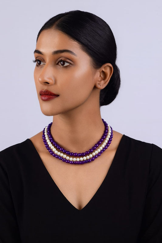 Elegant Royal Purple Beaded Pearl mala with Crystal Detailing