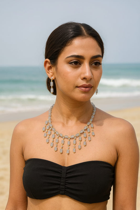 Elegant Grey Transparent Beads Multi-Layer Crystal Beaded Mala