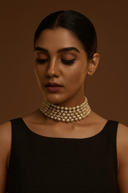 Antique Statement white Pearl Choker Multi-Layer for Women