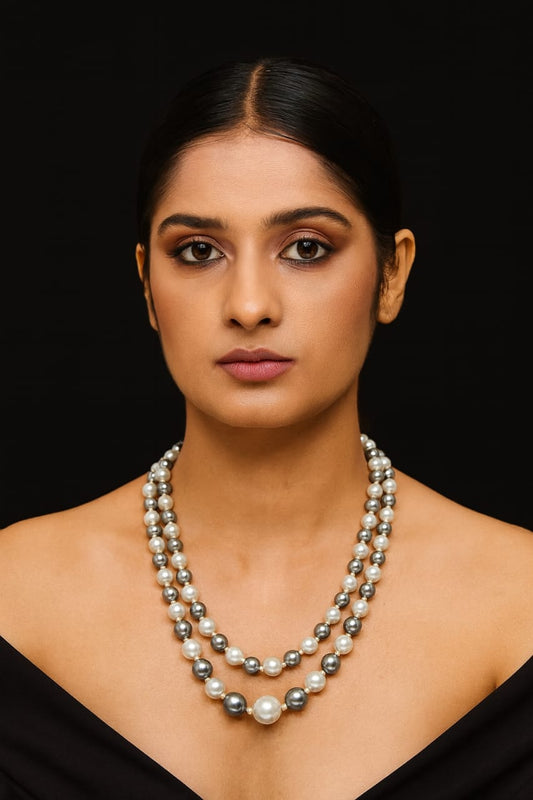 Classic Grey & White Beaded pearl two Layered mala for Women