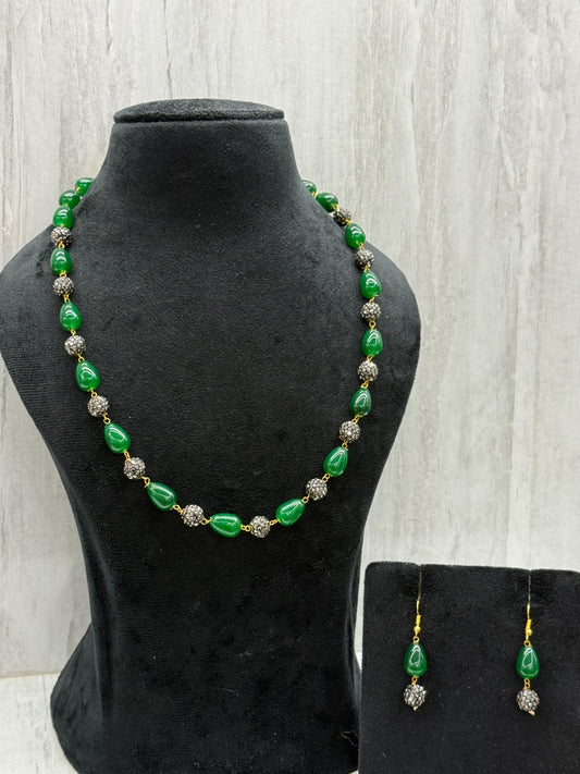 monalisa pearl with cz boll in green mala for woman