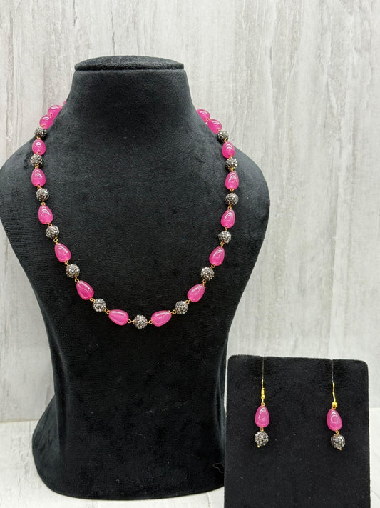 monalisa pearl with cz boll in pink mala for woman