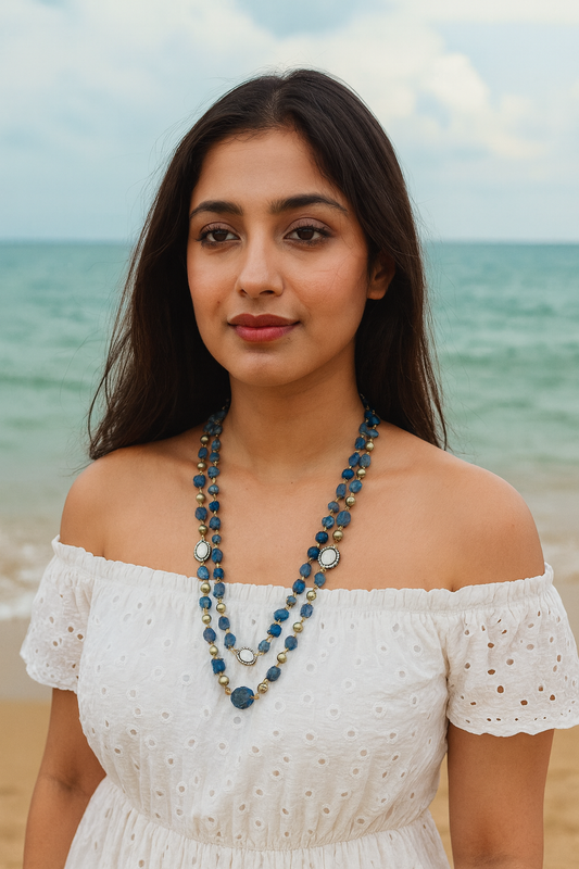 Elegant Double Layer Blue Beaded Mala with Pearls