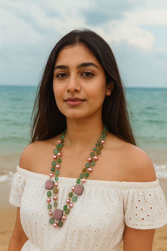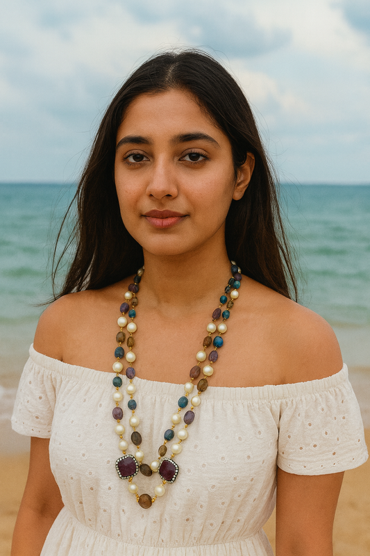 Elegant Double Layer Multi colour Beaded Mala with Pearls