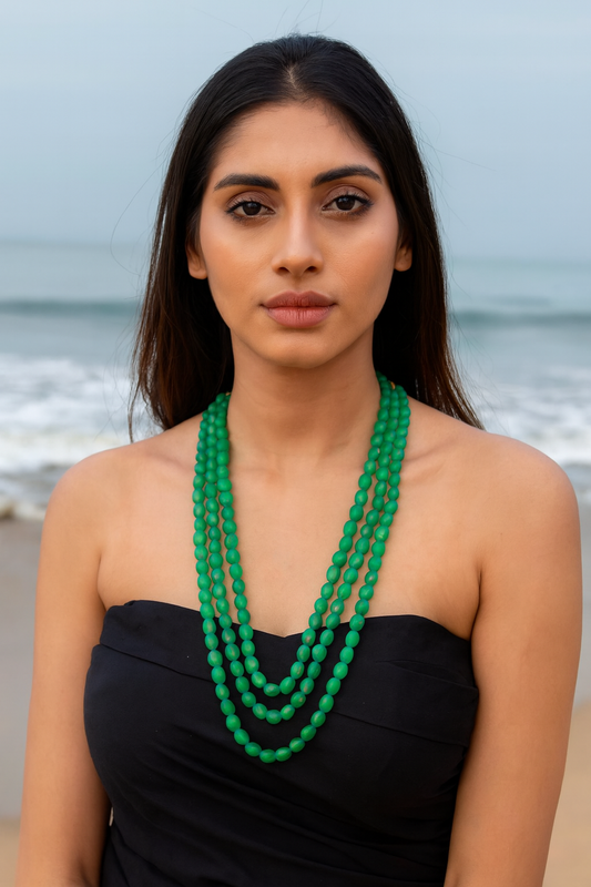 Ethnic Handcrafted three Layer Green Beaded Cz Mala for Women