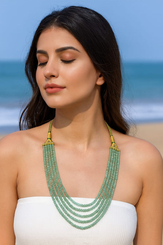 Unique Five Layered Green Onyx Beaded Mala For Women and Girl
