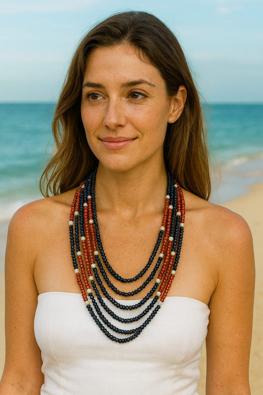 Unique Seven Layered Oynx Beaded Mala Red and black mala for women