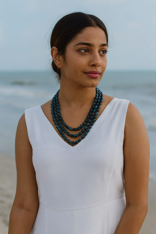 Ethnic Handcrafted Three Layer Blue Beaded Cz Mala for Women