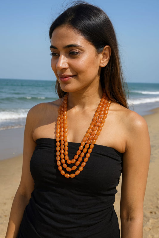 Antique orange Five Layered Onyx Beaded Mala For Women and Girl