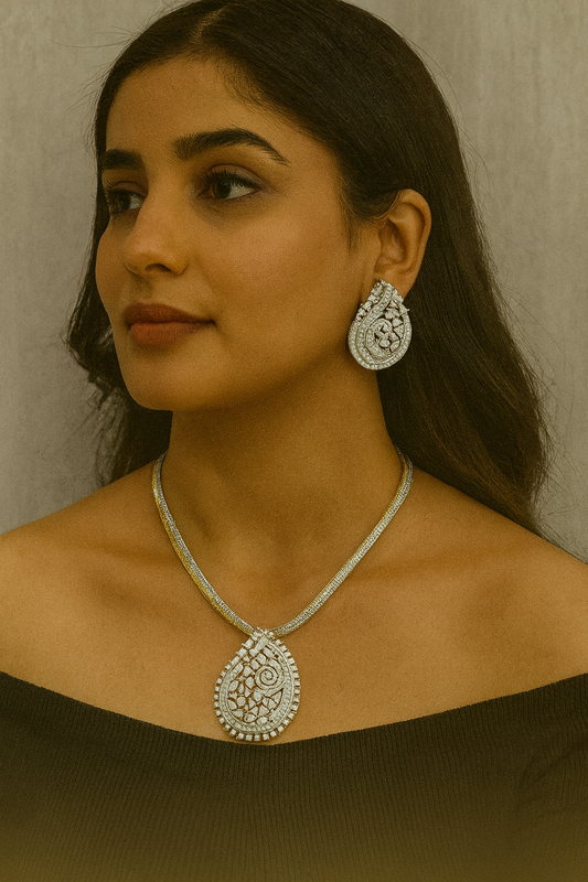 Elegant Paisley Diamond-Cut Pendant & Earrings Set