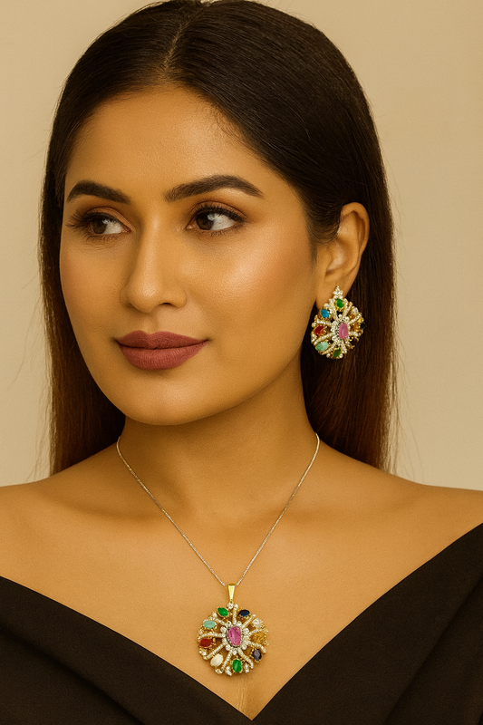 MultiColor CZ Round Pendant Set with Matching Earrings