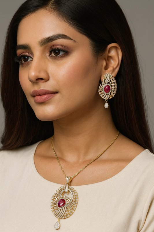 RED BEAUTIFUL PENDANT SET FOR WOMEN