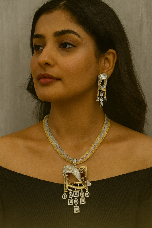 Gold-Plated Diamond-Cut Necklace & Earring Set