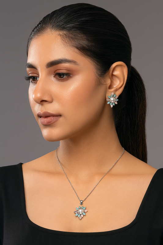 SILVER POLISH WITH MINT GREEN AD STONE PENDANT SET FOR WOMEN